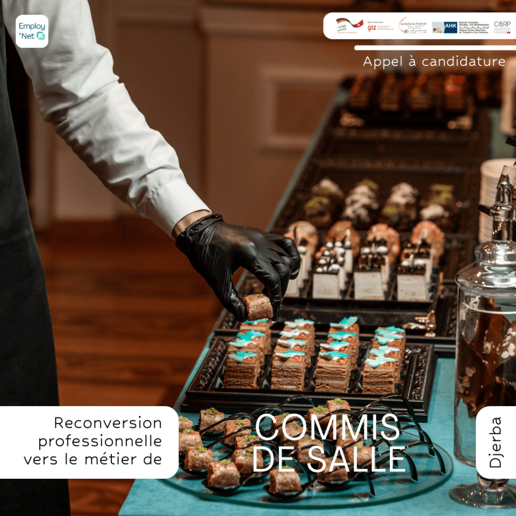 Dans le cadre du projet Employ’Net, les inscriptions sont désormais ouvertes pour les chercheurs d’emploi intéressés de se reconvertir professionnellement vers le métier de commis de salle à Djerba.